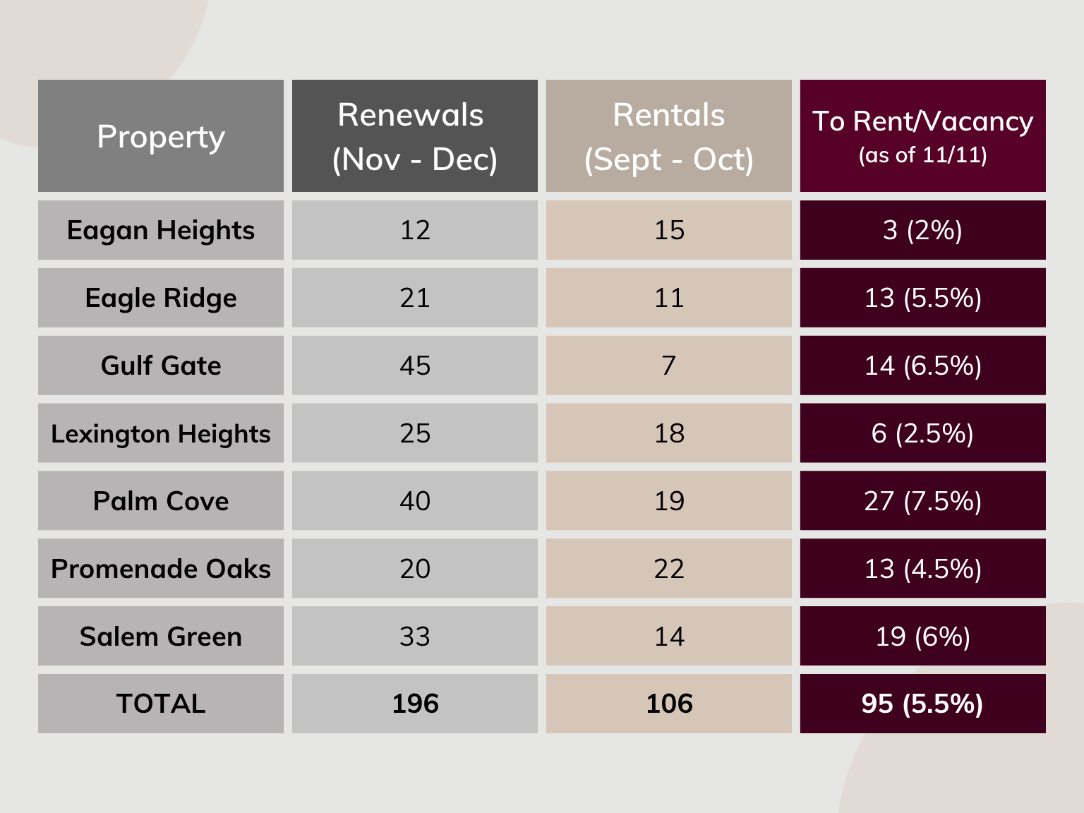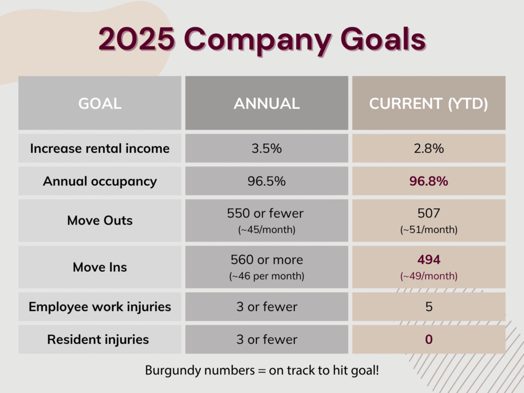 We’ve made big strides toward our 2025 goals since September—especially in occupancy and move-ins!